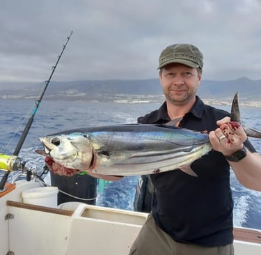Experience the thrill of fishing with Captain Gavin, your local expert in Tenerife's waters.